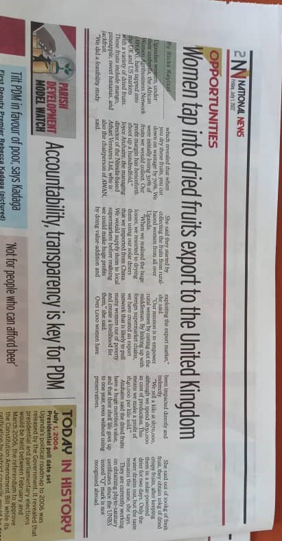 To celebrate the season AWAN, led by Joyce Atuhaire, held the candle high when their team won a grant to enable them trade opportunities in dried fruit in the UK.
