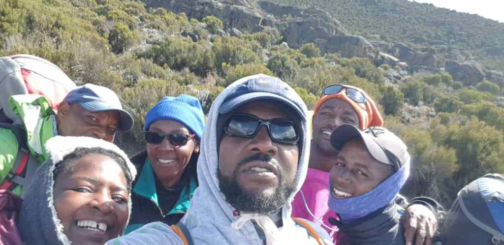 We reach Mandara, the first camp on our route, at about 5.00 pm; a long first day. We are tired but we are excited. This is not our first trek though. A few years back we (Hilda, Pam, Sam), had climbed Mr. Muhabura in Western Uganda and Mt Elgon in Eastern Uganda. The Tororo Rock too in Tororo! In comparison, Mt Kirimanjaro is a friendlier slope so far. We do not want to remember the Killer Muhabura. We take our evening tea and chat away the evening as we wait for dinner. We are served at about 7.30. Everybody is scampering for hot soup! Thank God it is more than enough! The disappointment is that after it gets served by the time it reaches the lips it is no longer hot! The intense cold has already dealt with it. We go to sleep at about 9pm after instructions to be up by 7am so that we set off by 8. But do we sleep? The cold! It is that type of cold which sneaks to your every part of the body including the hair.