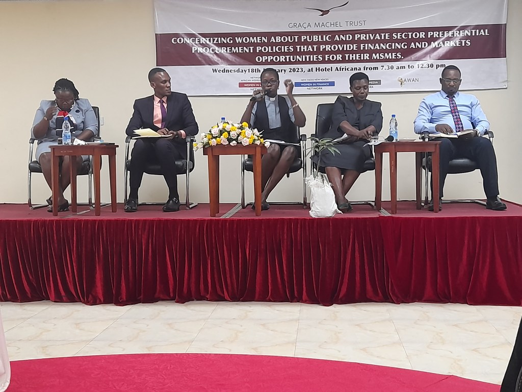 In Uganda, women in business have demanded a fair share of Public Procurement tenders. This was fronted at a stakeholder dialogue organised by the Graca Machel Trust Networks – Uganda, held at Hotel Africana in Kampala on 18th January 2023. Connie Kekihembo, the Executive Director of Uganda Women Entrepreneurs Association Limited (UWEAL) and the lead researcher on procurement policies in Uganda quotes Harvard University, 2012, that, “While data vary, it has been estimated that public procurement constitutes 10-15% of GDP in developed countries and up to 20% in developing countries.
