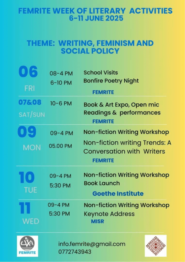 FEMRITE Week of Literary Activities 2025 is here – 6th to 11th June 2025, with support of Makerere Institute of Social Research.